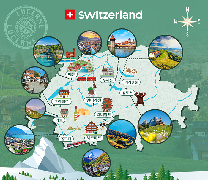 ※ 상기 이미지는 예시 이미지입니다. ■ 주요 관광지 ☑ 마테호른의 절경을 가장 잘 볼 수 있는 고르너그라트 등정☑ Top of Europe 유럽의 지붕 융프라우 등정☑ 스위스에서 가장 인기 있는 산 중 하나인 리기산☑ 유럽에서 가장 긴 빙하로 유네스코 세계자연유산으로 지정된 알레치 빙하 감상■ 기타☑ 예약 신청금 1인 300만원씩 2일 이내로 입금 시 예약 확정됩니다.☑ 10명부터 행사 진행 가능하며 전 일정 전문투어리더가 가이드 역할하며 진행합니다. ☑ 차량은 45~49인승 대형버스를 이용합니다.☑ 환전은 스위스프랑으로 준비해주세요.☑ 현지 사정에 따라 숙박 도시의 순서 또는 주변의 다른 도시로 변경 될 수 있습니다. ☑ 본 상품은 예약시점 및 예약인원에 따라 상품가가 인상될 수 있습니다.☑ 일등석 추가요금은 별도로 문의 부탁드립니다.☑ 그룹석 16석 초과 시, 실시간 항공 발권으로 추가 모객을 받고 있습니다. 이 경우, 추가금액 발생할 수 있습니다.☑ 아시아나 항공 등 스타얼라이언스 적립 가능한 항공권입니다. (약 11,000마일 적립)